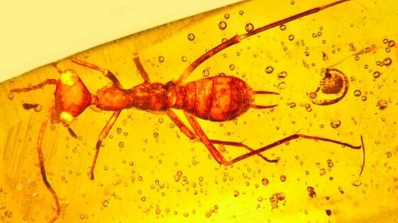 Неизвестное существо с треугольной головой нашли в янтаре