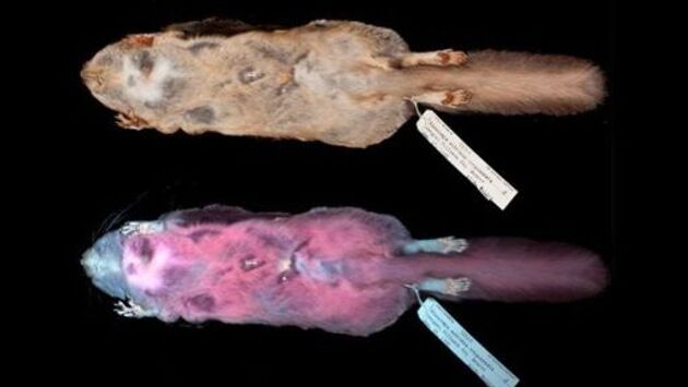 Зоологи случайно обнаружили, что белки-летяги Северной Америки светятся розовым цветом в ультрафиолетовом излучении. Джон Мартин (Jon Martin), профессор из Нортлендского колледжа в Висконсине (США) сделал необычное открытие поздно вечером, когда заметил белку-летягу во время изучения местного лишайника. Учёный направил на животное специальный фонарик и увидел яркую вспышку розового цвета. После этого Мартин решил изучить музейные образцы 135 видов других белок, чтобы проверить, все ли животные могут светиться аналогичным образом. Выяснилось, что только особи вида Glaucomysgenus мерцают розовым при ультрафиолетовом освещении. Совместно со своими коллегами из Нортлендского колледжа и Техасского университета учёный описал новое явление, назвав его «на первый взгляд неестественным для мира природы». Неизвестно, почему мех белок становится розовым, хотя команда выдвигает гипотезу о том, что эта особенность помогает белкам видеть друг друга в темноте. Исследователи также предполагают, что это способ избежать хищников, хотя в целом розовый цвет может быть просто побочным эффектом эволюции. Фото: Kohler et al.