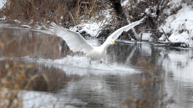 Россияне спасли оставшегося зимовать на берегу реки лебедя