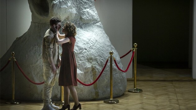На сцене стоит Нос. Он огромный, серый и уродливый. Чтобы не было никаких шансов его не заметить, вокруг основательное музейное ограждение и табличка: "Нос". Главный экспонат, символ наших комплексов и болевых точек. Вокруг этого объекта и закручивается личная трагедия современного Сирано, которую поставили в Рязанском театре драмы. Режиссер Евгений Маленчев выбрал для постановки не классический текст Ростана, а современную пьесу Юлии Поспеловой "Сирано. Экспозиция". История сохранила имена, характеры, некоторые детали, но стихи, а главное, обстоятельства стали новыми, более близкими и понятными для зрителя. Если, конечно, зритель сможет принять сам факт подобного решения в духе "пост-пост-постмодерна". На этот случай авторы подготовили несколько извинений и прямых отсылок к классической комедии. Мушкетёров, например, точно стоит ждать. Так о чём новый "Сирано"? Полное название уже даёт подсказки. У слова "экспозиция" множество значений, но нам интересны два. Экспозиция как выставка предметов искусства — и правда, всё действие происходит в небольшом выставочном пространстве, расположенном в торговом центре — и метод экспозиции, применяемый для лечения тревожных расстройств. Его суть в том, чтобы дать пациенту встретиться со своим страхам в безопасной ситуации. Театр — отличное место для экспозиционной терапии. Фото: Рязанский театр драмы И вот наш главный пациент, Сирано (Андрей Блажилин). Он умница, хороший специалист, человек тонкой души и отличного чувства юмора, но первое, что видят люди и знает о себе он сам — он толстяк. Это не эпитет, а вторая личность, боязливое и безвольное альтер-эго. В стрессовых ситуациях именно толстяк перехватывает контроль — и смелого, остроумного Сирано больше нет, он спрятался где-то внутри, где ему не смогут сделать больно. Со стороны картинка не искажена внутренними страхами, так что окружающие Сирано люди и зритель понимают — тот достоин любви, он больше, чем форма тела. Как огромный нос на сцене, который сначала бросался в глаза, а потом, с развитием действия стал незаметным, так и физические параметры перестают быть важными, если речь идёт о душевной близости. Но это видят Кристиан, Лебре, зритель, а верит Сирано только толстяку, который прятал и защищал его с самого детства. И потому по окончании действия кому-то останутся одинокие вечера с каналом HBO, а кто-то при выходе из зрительного зала, возможно, задумается, нет ли у него своего "носа", отбрасывающего тень на будущее счастье.