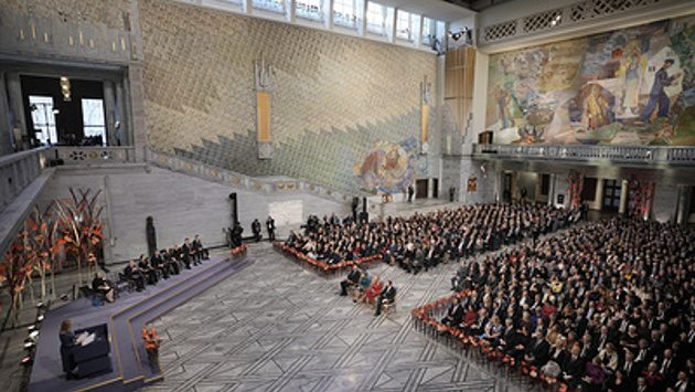 После вручения наград лауреаты, гости, члены королевской семьи и правительства, представители научной, деловой и культурной элиты отправились на традиционный банкет в ратушу Стокгольма.