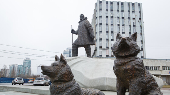 Прямо у здания ААНИИ стоит приметная скульптура. На ней тепло одетый бородатый мужчина и две ездовых собаки. Украшает изваяние камень, на котором высечено: «Тем, кто шел первым, тем, кто идет, тем, кому еще предстоит пройти». Они не просто идут уже 102 года. А с помощью науки покоряют неизведанные земли. Свою историю институт ведет с 1920 года. Тогда была организована научно-промысловая экспедиция при Верховном совете Народного хозяйства. Перед полярниками век назад стояла такая же задача, как и перед учеными сегодня – в первую очередь освоить Северный морской путь.