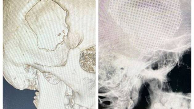 Для этого специалисты сперва выполнили трепанацию черепа и удалили внутримозговые гематомы. После чего заменили пораженный участок кости титановой 3D-пластиной, специально смоделированной с учетом особенностей черепа.