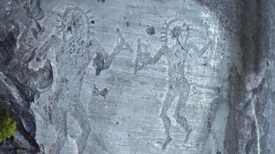 Фигуры с большими головами, огромными чёрными глазами, ореолом вокруг головы и — самое главное — без рта. Сторонники палеоконтакта видят в них портреты инопланетян в шлемах или скафандрах.