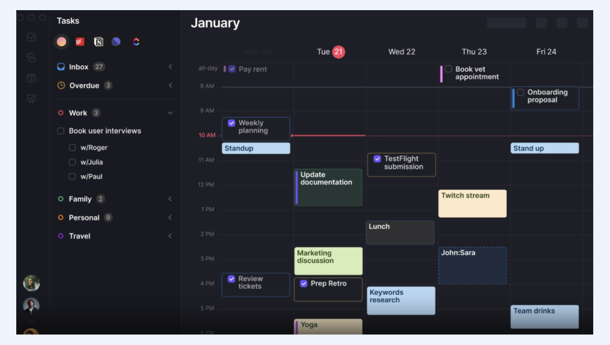 - Динамическое расписание. Сервисы вроде Motion или Morgen автоматически перестраивают график. Если прилетает срочная задача, алгоритм сдвигает менее приоритетные дела на свободные слоты, учитывая дедлайны.