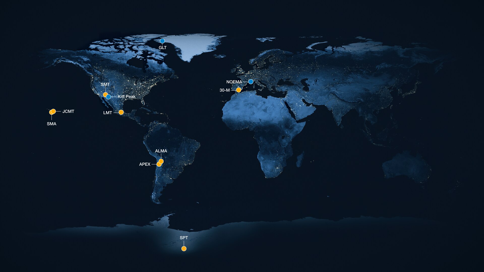 Расположение радиотелескопов, участвовавших в проекте EHT