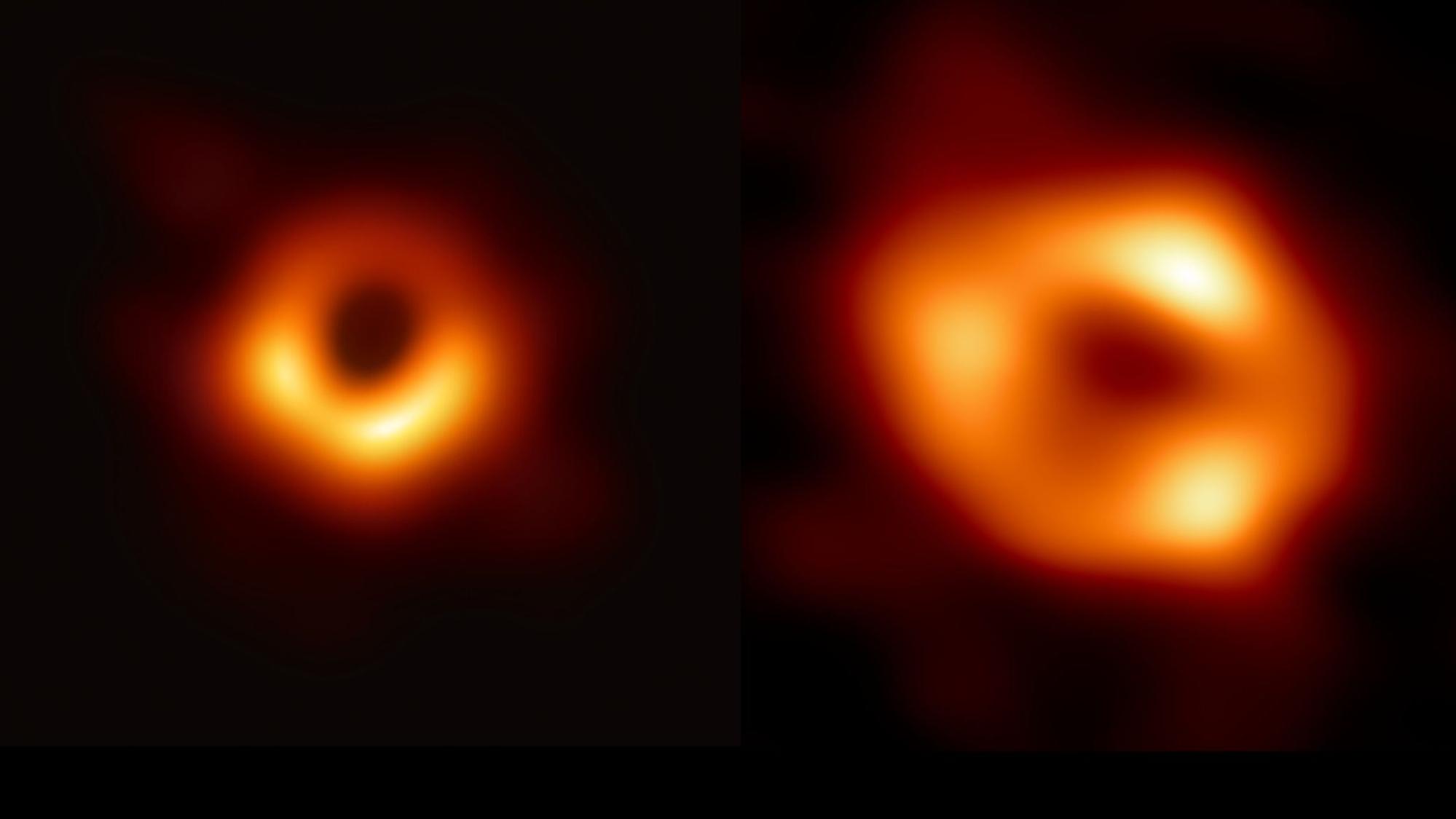 Тени чёрных дыр в центрах галактик M87 (слева) и Млечный Путь (справа)