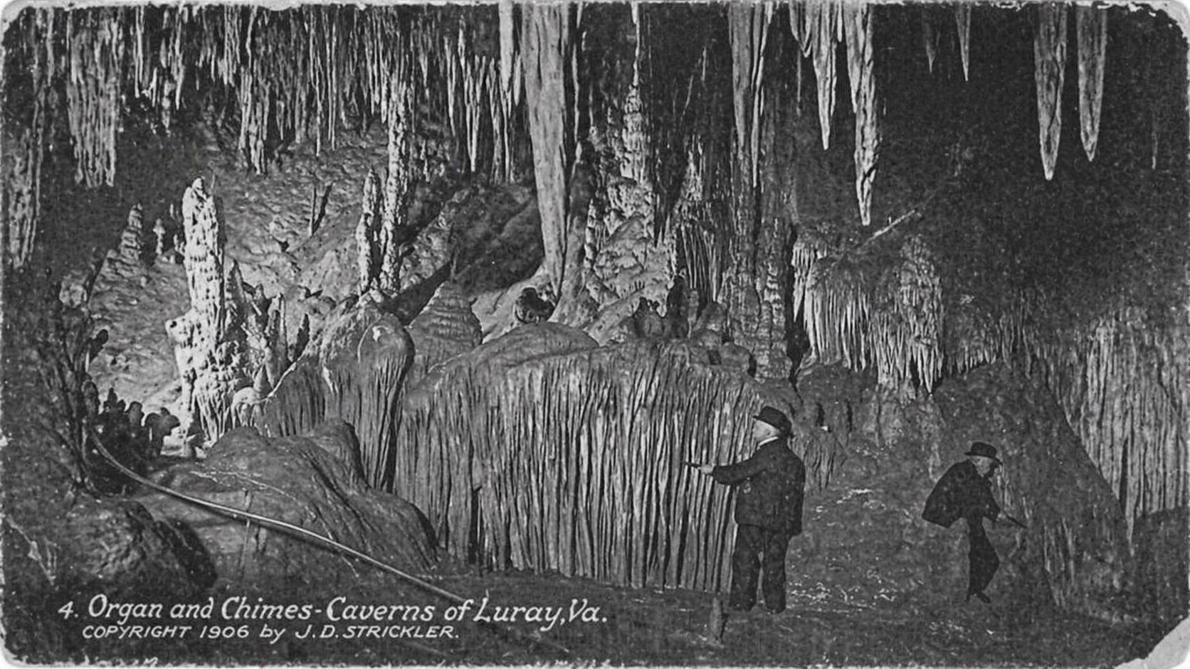 Почтовая открытка 1906 года с изображением литофона, на котором играют в Лурейских пещерах