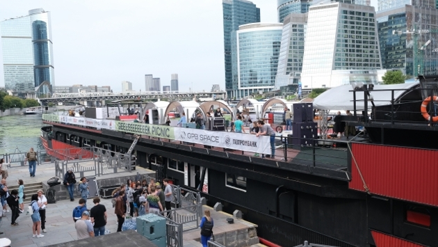 На верхней палубе расположились главная сцена с диджейским пультом, а также небольшие торговые точки и стенды с робототехникой. На нижней палубе были организованы лекторий и интерактивные презентации, предлагающие гостям погрузиться в виртуальную реальность или же послушать спикеров-специалистов.