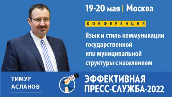 С таким докладом выступит Тимур Асланов на конференции «ЭФФЕКТИВНАЯ ПРЕСС-СЛУЖБА-2022», которая пройдет 19-20 мая в Москве.