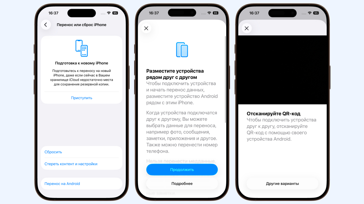 При настройке нового устройства iOS теперь предлагает и вариант с переносом данных на Android.