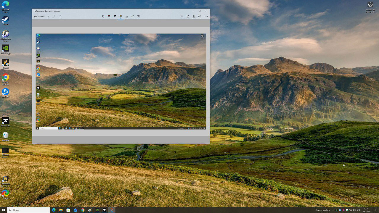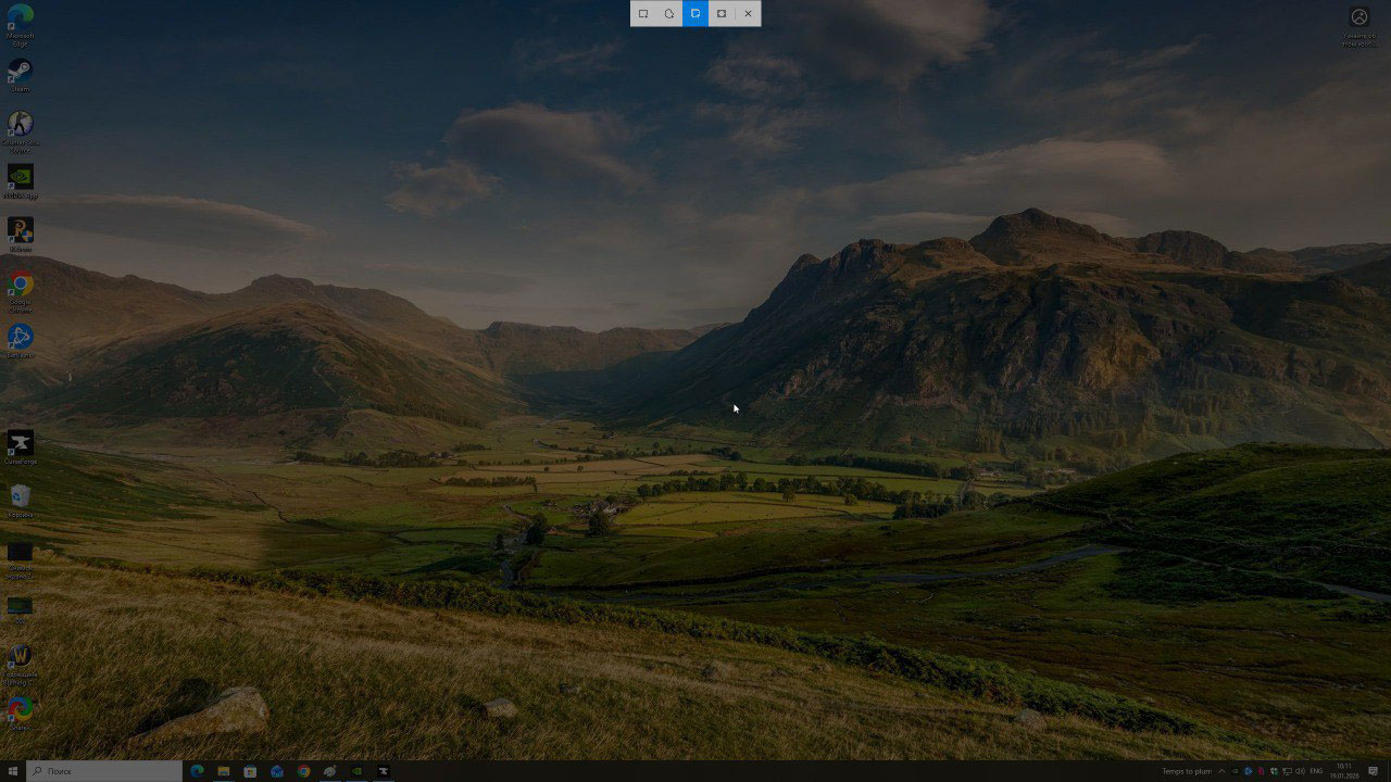 Если вам нужно быстро сделать скриншот рабочего стола, браузера или работающей программы, нажмите комбинацию клавиш Win + Shift + S. После этого экран слегка потемнеет, а сверху появится небольшая панель инструментов.