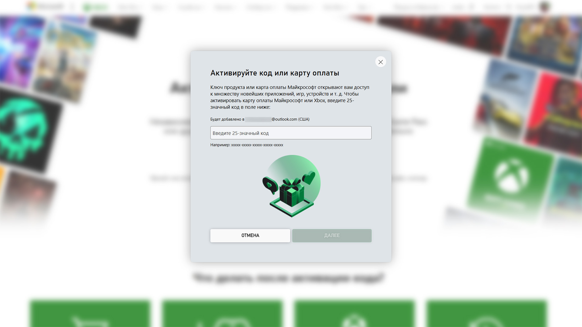 Проще всего это сделать со смартфона или компьютера. Зайдите на официальную страницу активации, авторизуйтесь под своим профилем Xbox (Microsoft) и введите полученный 25-значный код. После ввода на баланс аккаунта зачислится номинал предоплаченного ваучера.