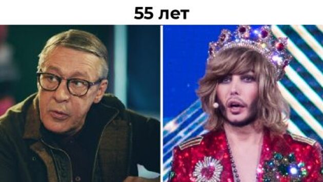 Никто не молодеет с годами, но есть исключения. Кто-то в 50 выглядит на свой возраст, а кто-то тянет максимум лет на 30. Мы решили найти ровесников среди российских знаменитостей. По паспорту они может и одногодки, а вот по внешности так не скажешь. Посмотрите сами. 1. Юрий Шатунов и Сергей Шнуров (46 лет) © yuriy_shatunov / instagram, © shnurovs / instagram 2. Данко и Иосиф Пригожин (50 лет) © danko_star / instagram, © prigozhin_iosif / instagram 3. Егор Дружинин и Василий Уткин (47 лет) © egordruzhininofficial / instagram, © realradioutkin / instagram 4. Сергей Зверев и Михаил Ефремов (55 лет) © Art Pictures Group, © wikipedia 5. Елена Корикова и Мария Аронова (47 лет) © korikova_official / instagram, © mariaaronova_official / instagram 6. Стас Костюшкин и Андрей Рожков (47 лет) © stas_kostyushkin_official / instagram, © rozhkovandrey_official / instagram 7. Алексей Климушкин и Валерий Николаев (54 года) © tnt, © Домашний 8. Александр Семчев и Сергей Астахов (50 лет) © НТВ, © Киноград 9. Вадим Демчог и Дмитрий Певцов (56 лет) © ТНТ, © wikimedia 10. Екатерина Шпица и Юлия Волкова (33 года) © katerinashpitsa / instagram, © official_juliavolkova / instagram 11. София Ротару и Наталья Варлей (71 год) © sofiarotaru.official / instagram, © wikimedia 12. Лариса Вербицкая и Надежда Кадышева (60 лет) © larisa_verbitskaya / instagram, © wikimedia 13. Равшана Куркова и Слава (39 лет) © rav_shana / instagram, © nastya_slava / instagram 14. Мария Сёмкина и Елена Ваенга (42 года) © Группа компаний Гамма, © vaengaofficial / instagram 15. Татьяна Веденеева и Татьяна Кравченко (65 лет) © wikimedia, © Студия Квартал-95 А вот 7 мест на теле, которые выдают настоящий возраст знаменитостей. Ни один косметолог не спасёт положение.