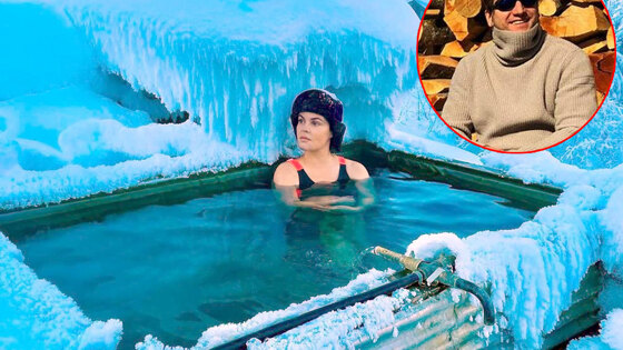 - Познакомилась с магической совой, поколдовала на хорошее настроение, на хороший год, на удачу, на любовь. А здоровье укрепила в бассейне с дикой радоновой водой, - рассказала Екатерина. - Вода +38, на улице -25. И не поверите: никакого основания пищать - тепло! Алтайская сила! Вот мой большой женский секрет!