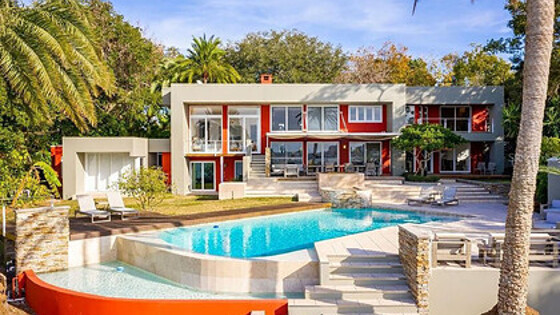 В доме есть кухня с оборудованным местом для завтраков, гостиная с камином, стильная терраса с видом на побережье Мексиканского залива, двухэтажная семейная комната. Дом находится на участке более четырех тысяч квадратных метров, на котором есть открытый бассейн.