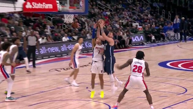 Дончич пошел в проход и после спин-мува в последний момент сделал скидку на Дориана Финни-Смита, который забросил 3-очковый.