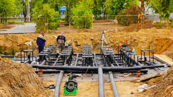 Глава г.о. Клин Алена Сокольская вместе с замминистра благоустройства Московской области Валерием Лобановым побывала в Высоковске, где полным ходом идут работы по благоустройству Школьного сквера.