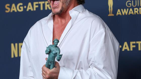 «Я немного пьян. Я думал, что могу напиться. Спасибо, HBO. О господи, я выставляю себя дураком, но спасибо вам огромное за это. Я в профсоюзе с 1999 года, и это чертовски невероятная честь. Спасибо всем номинантам... я сейчас не могу вспомнить ни одного вашего имени», — сказал Педро. И отдельно поблагодарил создателей сериала «Одни из нас», за который и получил заветную статуэтку. «Спасибо, что дали мне эту работу, потому что у меня нет других навыков и интересов», — пошутил актер. Ну а в конце речи чуть не расплакался, когда благодарил семью, и завершил свой спич словами: «У меня сейчас будет паническая атака. Я пойду».