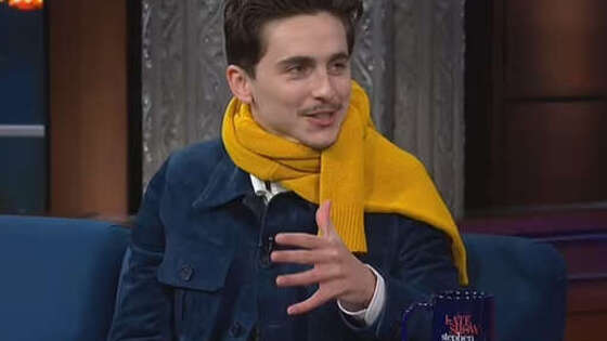 Актер Тимоти Шаламе с желтым шарфом пришел на шоу с новым имиджем. Об этом сообщает Dailу Mail. В вечернем шоу со Стивеном Колбертом Тимоти Шаламе пошутил о своих усах, которые отрастил ради роли в фильме. "Когда я впервые оказался здесь, я еще не достиг половой зрелости", — высказался актер. Он также вышел на публику в синем пиджаке, серых брюках в клетку и желтом шарфе, вызвав шутки в комментариях у поклонников в соцсетях. До этого появилась информация, что отношения Тимоти Шаламе и Кайли Дженнер перешли на новый уровень. Актер сблизился с детьми модели — 6-летней дочерью Сторми и двухлетним сыном Эйром, которых звезда родила от рэпера Трэвиса Скотта. Инсайдер издания People заявил, что артист участвует в воспитании девочки и мальчика.