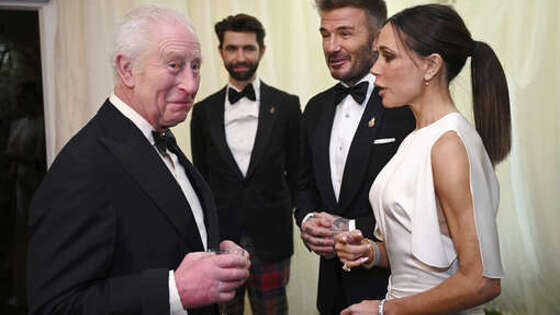 Спортсмен Дэвид Бекхэм с женой посетил королевский ужин Карла III в Великобритании