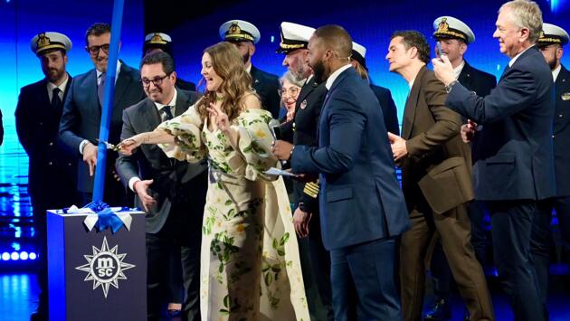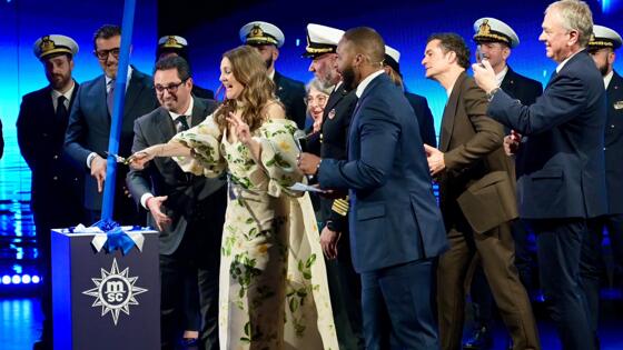 Кто где, а Дрю Бэрримор сейчас нежится на тёплых пляжах Майами. Актриса прилетела в прибрежный город ради дела — вместе с Орландом Блумом она участвовала в церемонии открытия нового круизного лайнера MSC World America. В рамках празднования Дрю даже была названа «крёстной матерью» корабля.