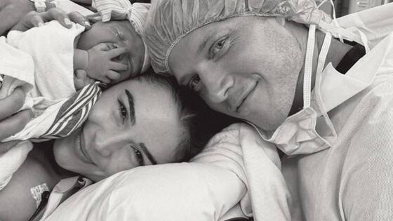Счастливые родители поделились радостной новостью в социальных сетях, опубликовав трогательные чёрно-белые фотографии из роддома, где запечатлён первый момент знакомства отца с новорождённой дочерью, и сразу же раскрыли имя малышки.