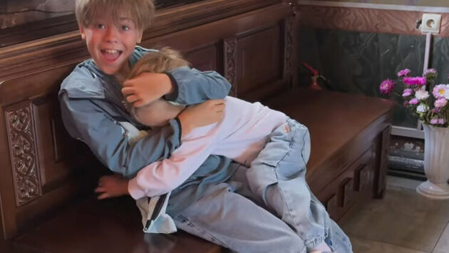 42-летняя Наталья Подольская снялась сыновей Артемия и Ивана в церкви. Мальчики обнимались на скамейке.