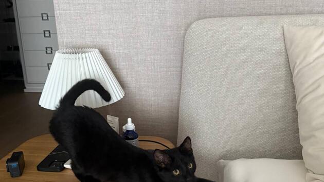 Виктория Боня не стала придумывать сложный образ на Хэллоуин: выбор пал на ободок с кошачьими ушками, который позволил блогерше перевоплотиться в кошку, а если точнее — в собственного кота.