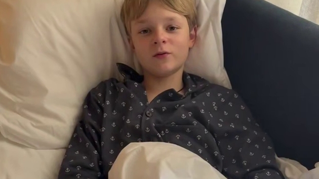 На кадрах ролика, который продюсер приложила к публикации, 12-летний фигурист лежит в постели, в пижаме, укрытый одеялом.
