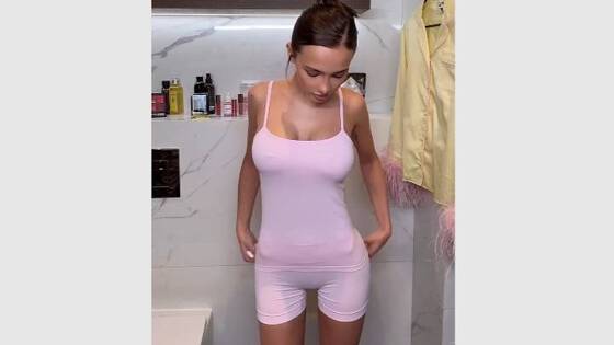 24-летняя знаменитость разместила ролик, в котором переоделась в розовый облегающий костюм, состоящий из майки на тонких бретелях и ультракоротких шортов.