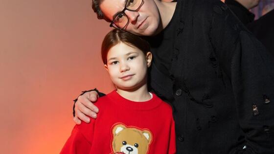 Для выхода артист выбрал лаконичный образ в стиле тотал-блэк — чёрные брюки, футболку и кардиган. Белла же предстала в более ярком наряде: синие брюки и алый свитшот с изображением мишки.