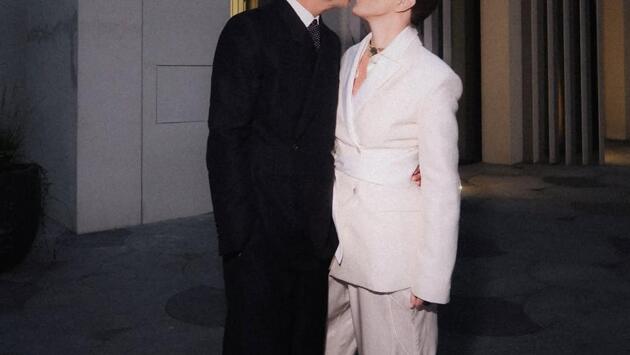 Ксения Собчак поделилась в социальных сетях новым совместным снимком с мужем, режиссером Константином Богомоловым. На фото пара позирует в лаконичных контрастных образах: Собчак — в белом костюме со струящимися брюками и атласной лентой на поясе, Богомолов — в черном костюме с белой рубашкой.