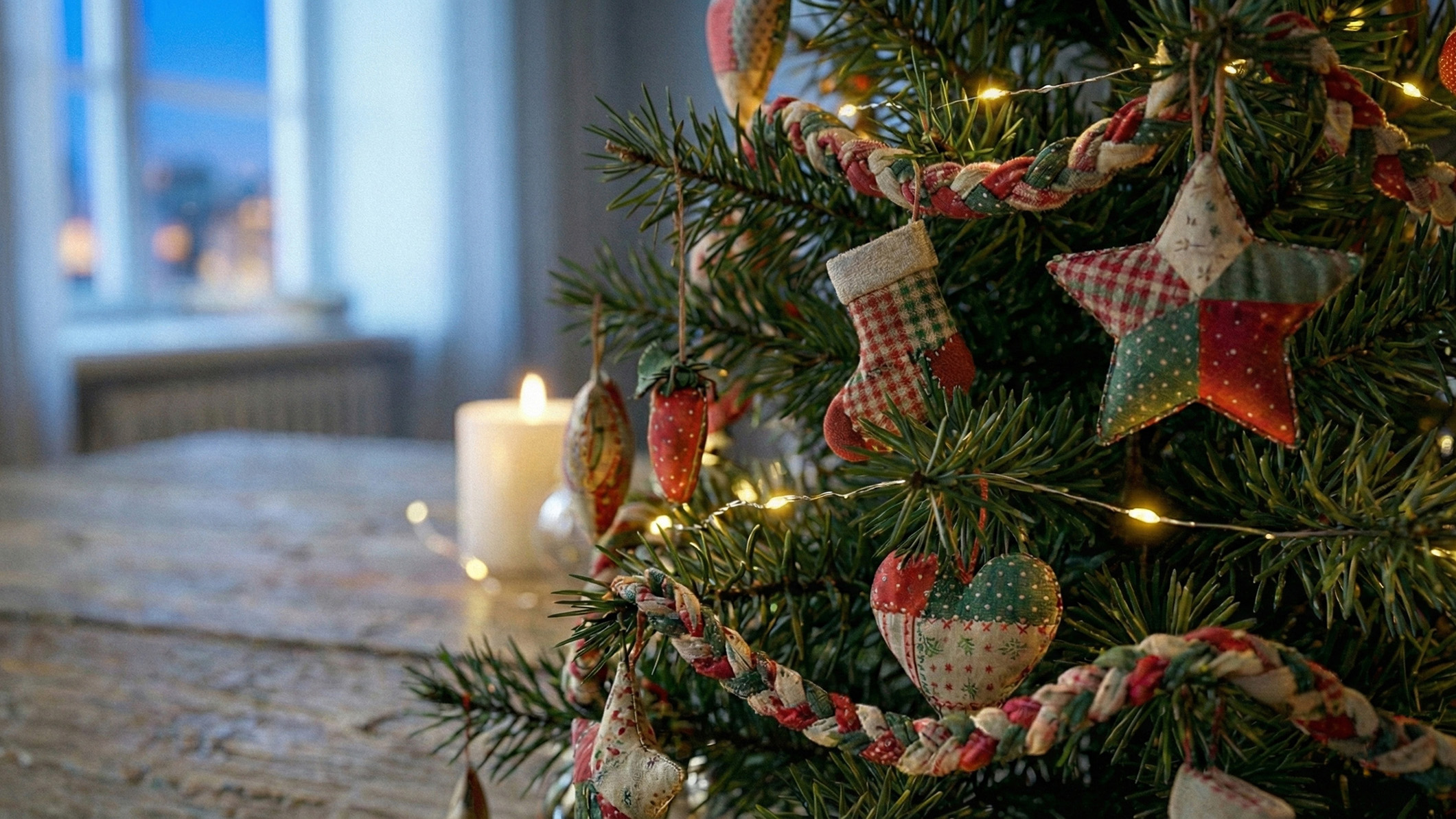 • ёлочные игрушки из обрезков ткани;