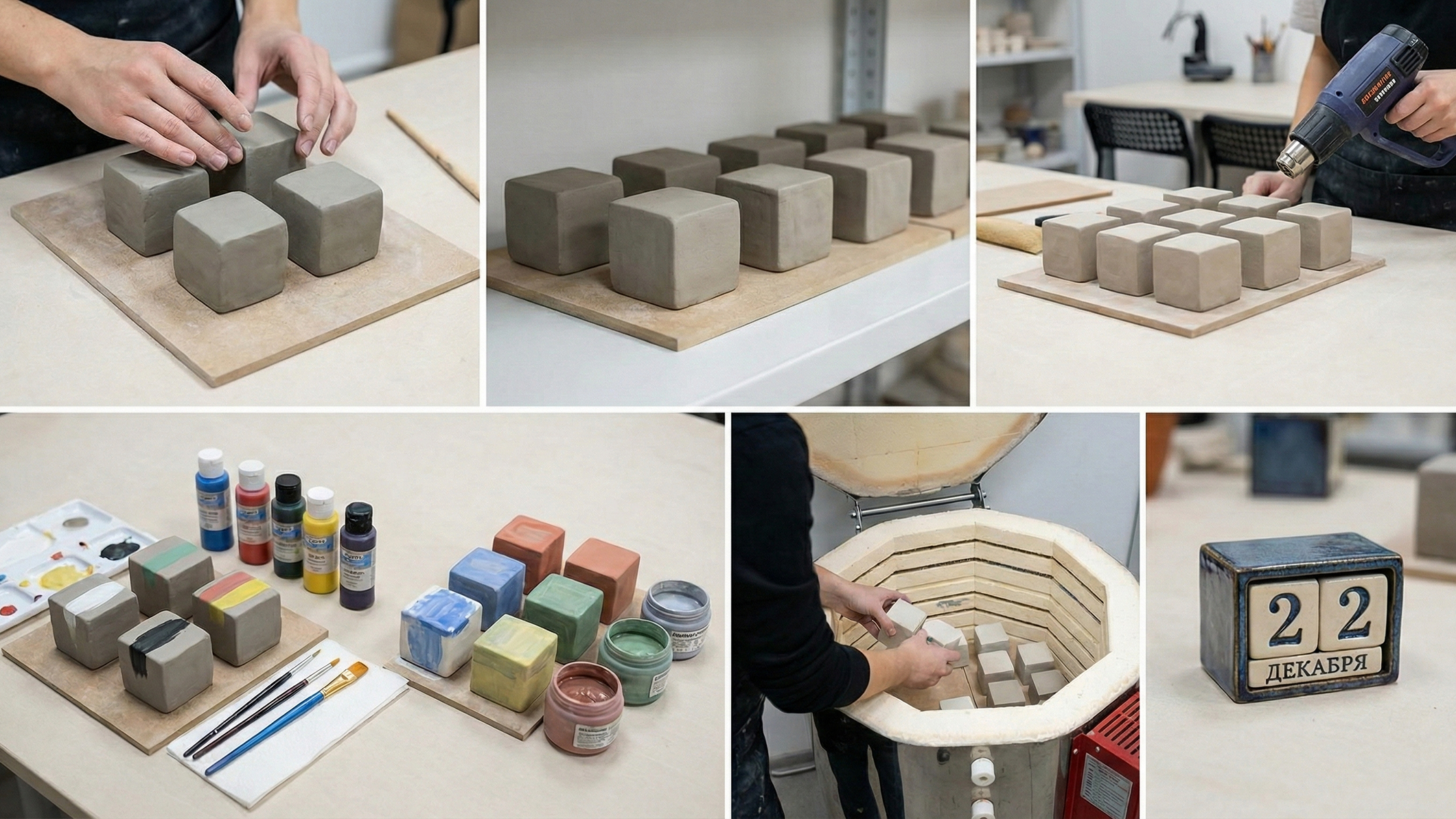 Календарь из обычной глины нужно будет отправить на обжиг в муфельную печь (дома этого сделать не получится). Обычно в керамических студиях для этого закладывают от 7 до 14 дней.