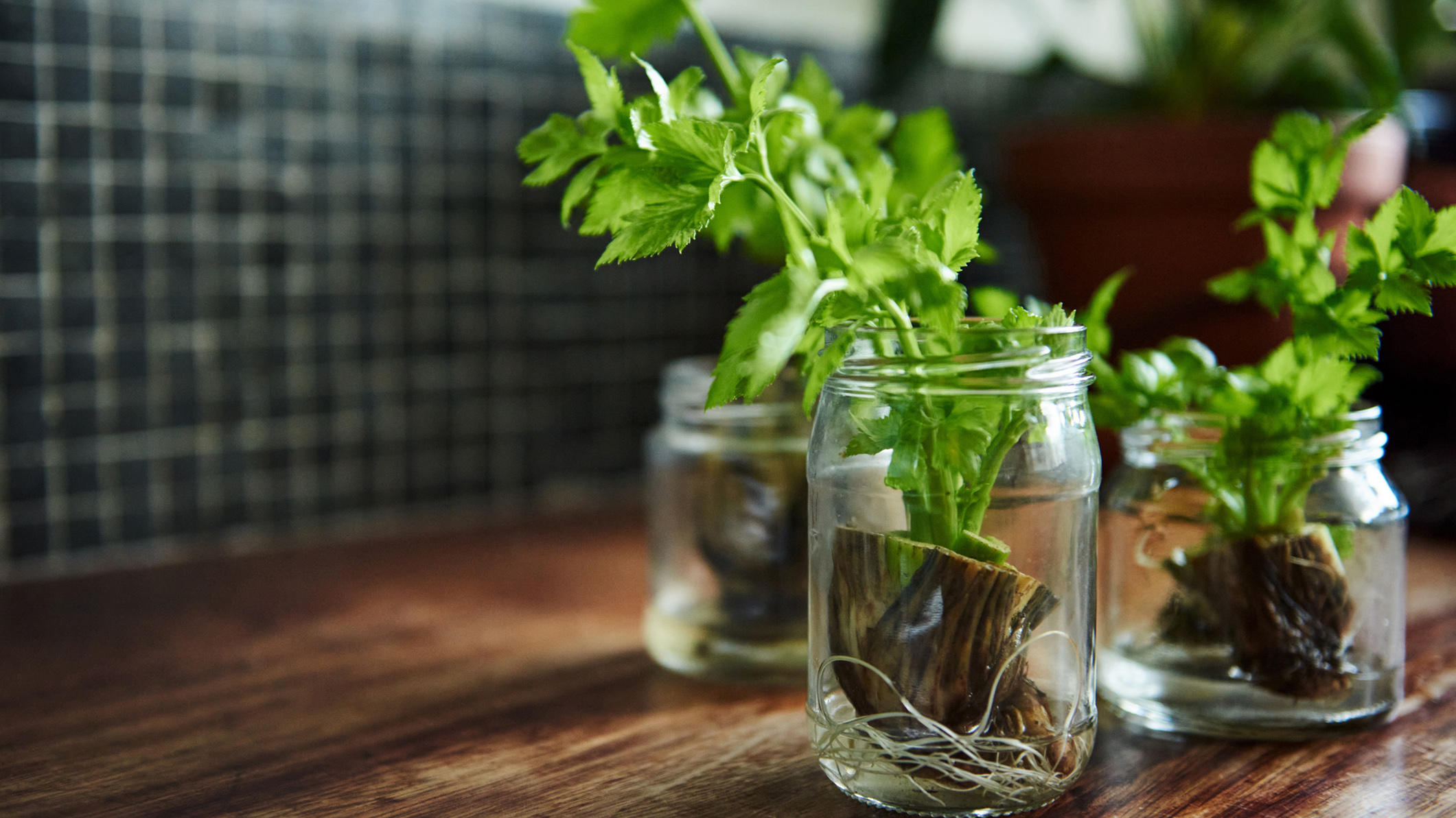 Почти все виды салатов, которые продаются в горшочках с корнями, легко вырастить повторно. Срезая зелень для готовки, оставьте «пенёк» высотой 3–4 см, поместите горшочек в ёмкость с небольшим количеством воды и поставьте в тёплое солнечное место. Уже через неделю-полторы можно будет сорвать свежие листочки для салата или сэндвича.