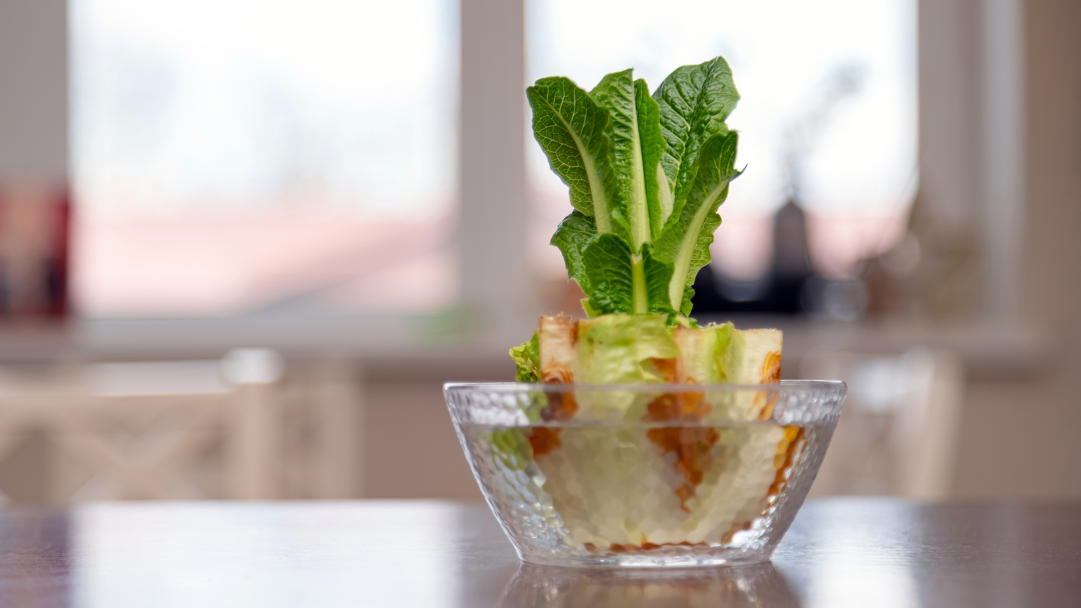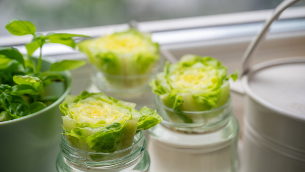 Если вы купили латук срезанным пучком без корней, просто поставьте оставшийся после использования нижний черенок в воду — растение пустит корни и даст новые листья.