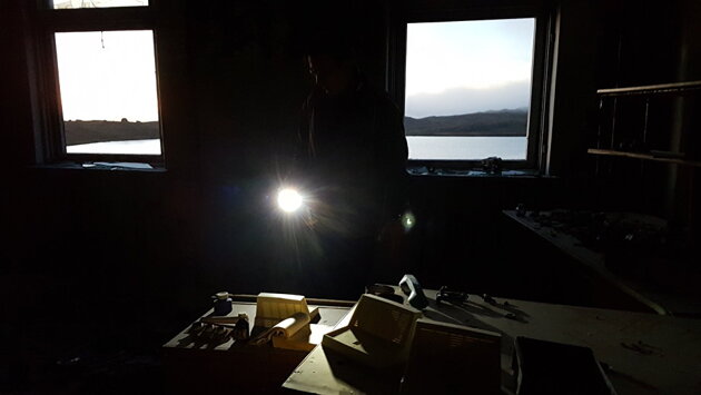 Вокруг деревянные шкафы, осколки стекла, фрагменты металлоконструкций. Сквозь пустые глазницы разбитых окон видно оранжевое зарево белой ночи над сопками. За покореженным листом металла чудится какое-то движение. Лисица! Мелькнула и скрылась в тундре.