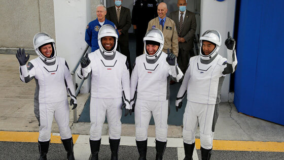 НАСА назвала осуществленный в субботу вечером запуск первым штатным полетом космического корабля «Кру Дрэгон» (Crew Dragon), который построен и эксплуатируется созданной Илоном Маском компанией «Спейсэкс». Находящиеся на борту астронавты — трое из НАСА и один из Японского космического агентства — покинули Землю из расположенного во Флориде Космического центра им. Кеннеди.