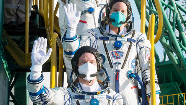 На МКС находятся российские космонавты Сергей Рыжиков, Сергей Кудь-Сверчков, американские астронавты Кэтлин Рубинс, Майкл Хопкинс, Виктор Гловер, Шеннон Уокер и японский астронавт Соити Ногути.