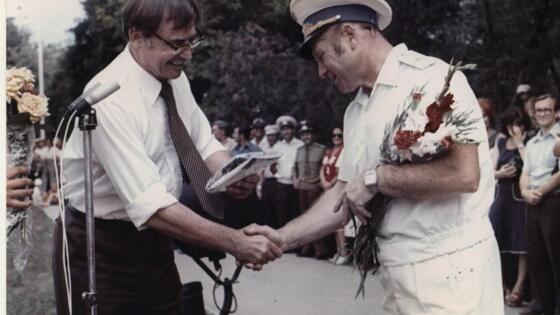 В предстоящий понедельник, 12 апреля, празднуется Всемирный день космонавтики. Причем, юбилейный – 60 лет с первого полета человека в космос! И хоть Анапа не Байконур и не Звездный, нашему городу-курорту этот праздник особенно близок. Ведь это у нас был пионерлагерь имени Юрия Гагарина, где отдыхали дети советских летчиков-космонавтов. А в центре города росла целая аллея космонавтов, которую собственноручно высаживали покорители космоса, прилетавшие в Анапу отдохнуть после трудов своих звездных. А как курорт встречал своих героев! Кстати, как? Об этом мы попросили рассказать исполнительного директора Анапской региональной курортной ассоциации Анатолия Бражника. С 1976 по 1980 годы Анатолий Григорьевич был главным молодежным лидером Анапы – первым секретарем горкома комсомола. Аллея космонавтов – Идея заложить аллею почетных гостей в парке 30-летия Победы, на спуске к табло климатопавильона, принадлежит Александру Сергеевичу Силенко – в то время первому секретарю горкома КПСС. И первую именную ель на этой аллее высадил дважды Герой Советского Союза Виктор Горбатко, который впервые побывал у нас в августе 1977 года. Он безумно любил Анапу. Он ведь наш земляк, родился в Гулькевичском районе. К сожалению, совсем недавно, в 2017 году, умер, – рассказывает Анатолий Бражник. Анатолий Григорьевич вспоминает, как торжественно принимали Виктора Горбатко в горкоме КПСС. Первый секретарь подарил гостю герб города. А он, комсомольский лидер, вручил макет катамарана. Пожелал, чтобы «под его парусами наши отважные космонавты полетели к другим планетам». После в Анапе побывали многие летчики-космонавты: Петр Климук и Георгий Береговой, Павел Попович и Вячеслав Зудов, Евгений Хрунов и Владимир Джанибеков, который, кстати, пять раз был в открытом космосе – выполнял работы по ремонту и восстановлению орбитального комплекса «Салют-7». А Виктор Горбатко и Алексей Леонов посетили город-курорт дважды. И все, по сложившейся традиции, шли в парк 30-летия Победы, где сначала поливал ели, посаженные предшественниками, а затем высаживали свою «именную». Табличку ставили, на которой было указано, кому «принадлежит» дерево. Одно из именных деревьев на центральной аллее парка, в частности, высадил легендарный космонавт Алексей Леонов, который первым вышел в открытый космос. Вот такую запись оставил Алексей Архипович в Книге почетных гостей: «Нет выше и больше счастья, чем видеть своих детей здоровыми, умными и счастливыми. Ключи от всего этого, что называется одним словом «счастье», находятся в ваших руках, уважаемые анапчане! Открывайте нам радость для всех» С глубоким уважением, летчик-космонавт СССР Алексей Леонов». Почётные пионеры курорта – В районе аллеи и всю дорогу, пока шла делегация, собирался народ – отдыхающие и местные жители, кричали, махали. Это было событие! Для всех космонавты были героями. Причем, они не только елки на аллее сажали, но и встречались с трудовыми коллективами, в частности, в колхоз имени Ленина ездили, где 33 героя соцтруда было. Продукцию дегустировали, – продолжает Анатолий Григорьевич. Город-курорт встречал гостей широко, щедро. Вино лилось рекой. Благо, богатырское здоровье космонавтам позволяло оценить продукцию анапских виноделов по достоинству. Неофициальная часть была на Змеином озере. Общение, застолье, купание. – Викт