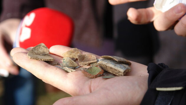 - Самым интересным был пятый шурф, - рассказал руководитель раскопок, заведующий кафедрой истории КИПУ, научный сотрудник института археологии Крыма Эмиль Сейдалиев. - Там очень четко просматривается стратиграфия. Под современными слоями на глубине 1 метр 60 сантиметров мы обнаружили керамические сосуды, курительную трубку и ниже всего кладку и плитку того же времени.
