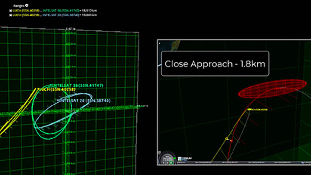 В США показали на компьютерной модели приближение одного из российских космических аппаратов (номер 40258 в каталоге Командования воздушно-космической обороны Северной Америки) серии «Луч» к коммерческому спутнику Intelsat 36. Соответствующий ролик опубликован американской компанией COMSPOC на Vimeo.