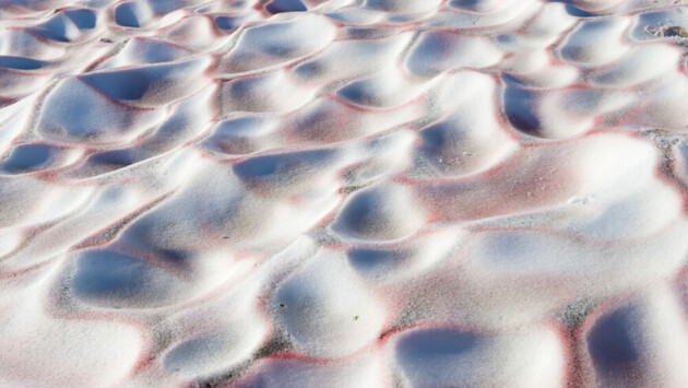 Речь идет об одноклеточной водоросли под названием хламидомонада снежная (Chlamydomonas nivalis). При отрицательных температурах она приобретает красноватый оттенок.