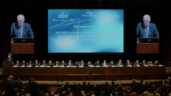 Также на Общем собрании выступил министр науки и высшего образования России Валерий Фальков. «В 2024 году совместно с РАН мы планируем пересмотреть подходы к системе оценки результатов научных исследований, прежде всего к категорированию научных организаций. Новая система, которая придет на смену действующей, должна быть направлена на формирование конкурентной среды в сфере исследований и разработок, обеспечивать институтам условия для динамичного развития и применения лучших отечественных наработок», — пояснил он. Фальков также сообщил, что средства на обновление приборной базы научных организаций на 2024 год будут доведены в полном объеме, а все соответствующие конкурсные процедуры завершатся до 30 декабря.