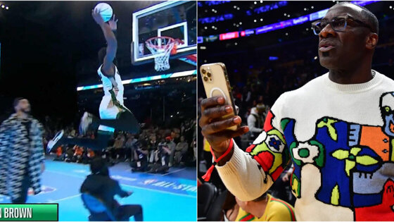 Браун в первом раунде конкурса данков со второй попытки забил сверху, перепрыгнув через сидящего на стуле стримера Кая Сената, но прошел в финал контеста.