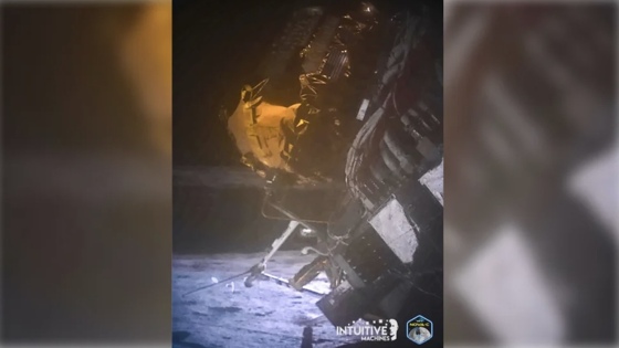 Благодаря этому снимку, сделанному камерой с узким углом обзора, команда миссии на Земле получила информацию о положении Одиссея на поверхности Луны. Ранее в компании сообщали, что один из двигателей аппарата во время полета отказал, и он прилунился на расстоянии около 1,5 км от того места, где планировалось.