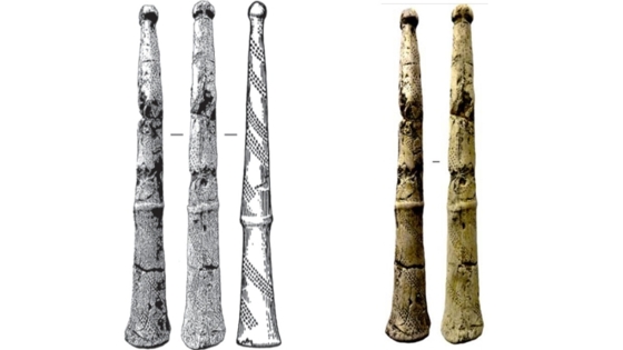 Продолговатый жезл из бивня мамонта с утолщением на конце и круглой головкой, найденный под Ачинском, был весь испещрен спиралевидным орнаментом из 1065 выемок. Как считают исследователи, выемки означают Луну в разных фазах – узор соответствует разным астрономическим периодам.
