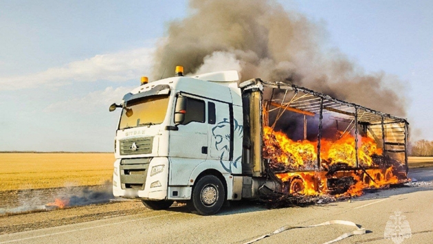 На трассе в Омской области сгорела фура