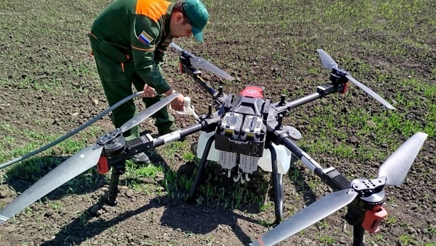 - Сначала с помощью картографического БПЛА проводится сканирование местности, на это уходит до двух часов. В результате получаем 3D-модель, позволяющую точно определить траекторию полета и избежать столкновения с разными препятствиями, к примеру, с деревом или столбом. Непосредственно во время обработки посевов навигацию обеспечивает антенна, - уточняет Михаил Карпухин.